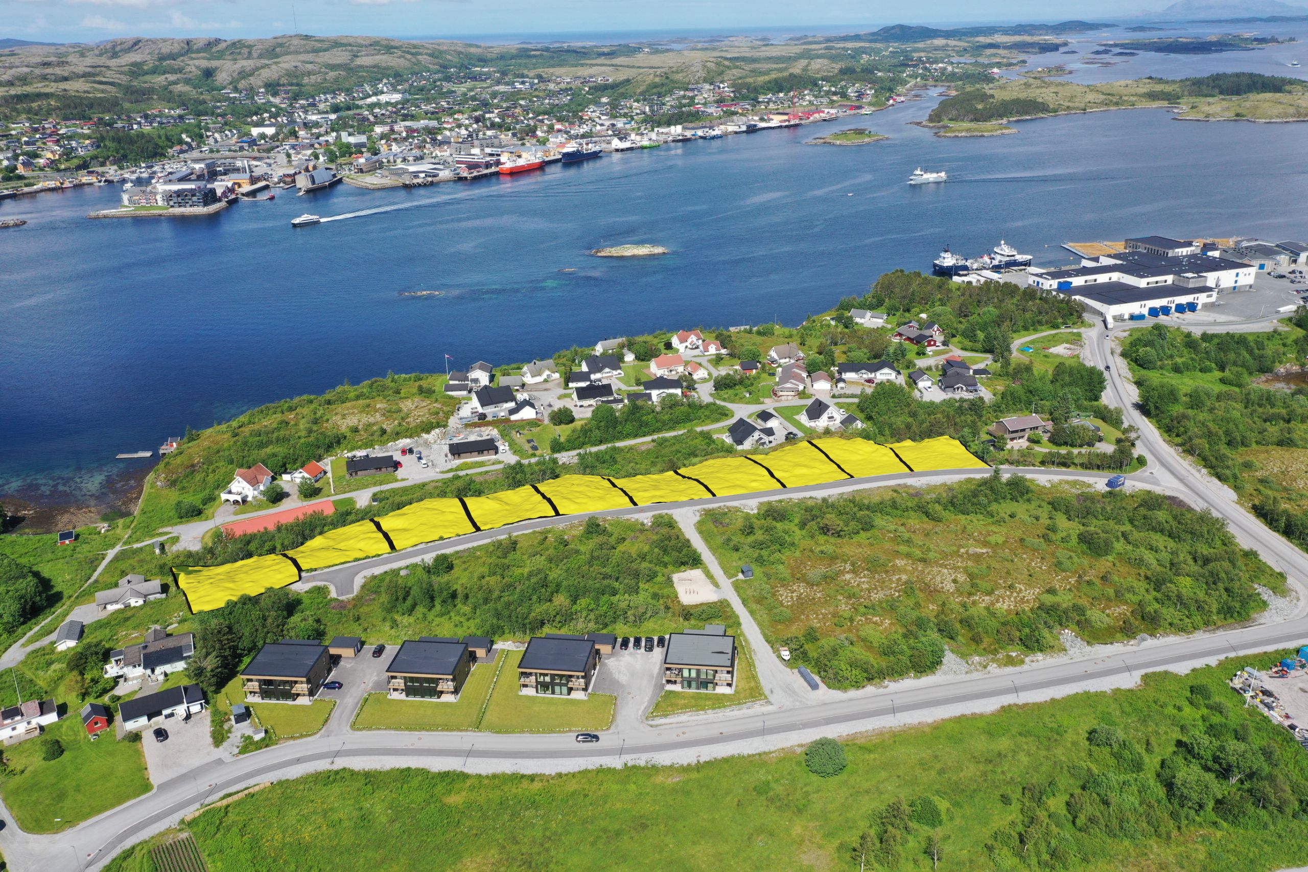 Tomtene har en unik plassering, med meget gode solforhold og fantastisk utsikt utover Nærøysundet. Hver tomt er på ca. 1 mål.